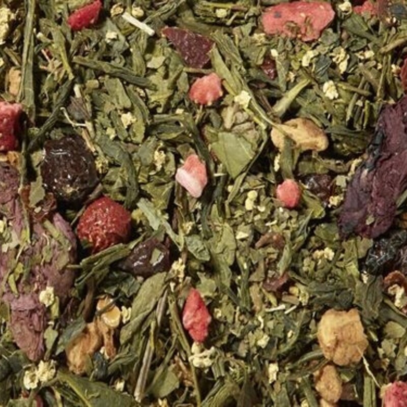 Ligera pero expresiva, esta mezcla de té verde cautiva con sus deliciosas bayas maduras y sus notas florales cremosas y dulces. Esta mezcla aromática se complementa perfectamente con hojas de mora dulces. Una mezcla muy fina y elegante que se ha refinado con muchos trozos de fruta y flores a juego.